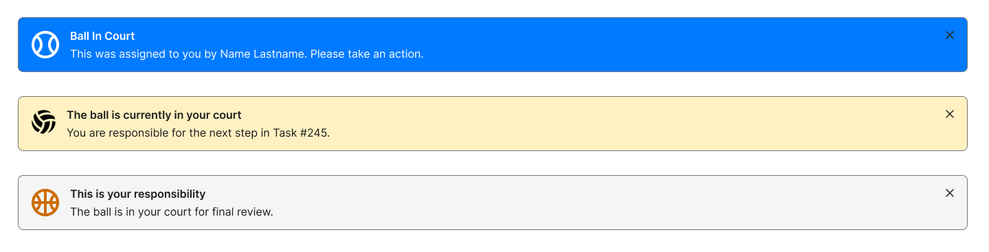 The sports metaphor is widely understood. Most users intuitively grasp that when the ball is in their court, they need to act. -